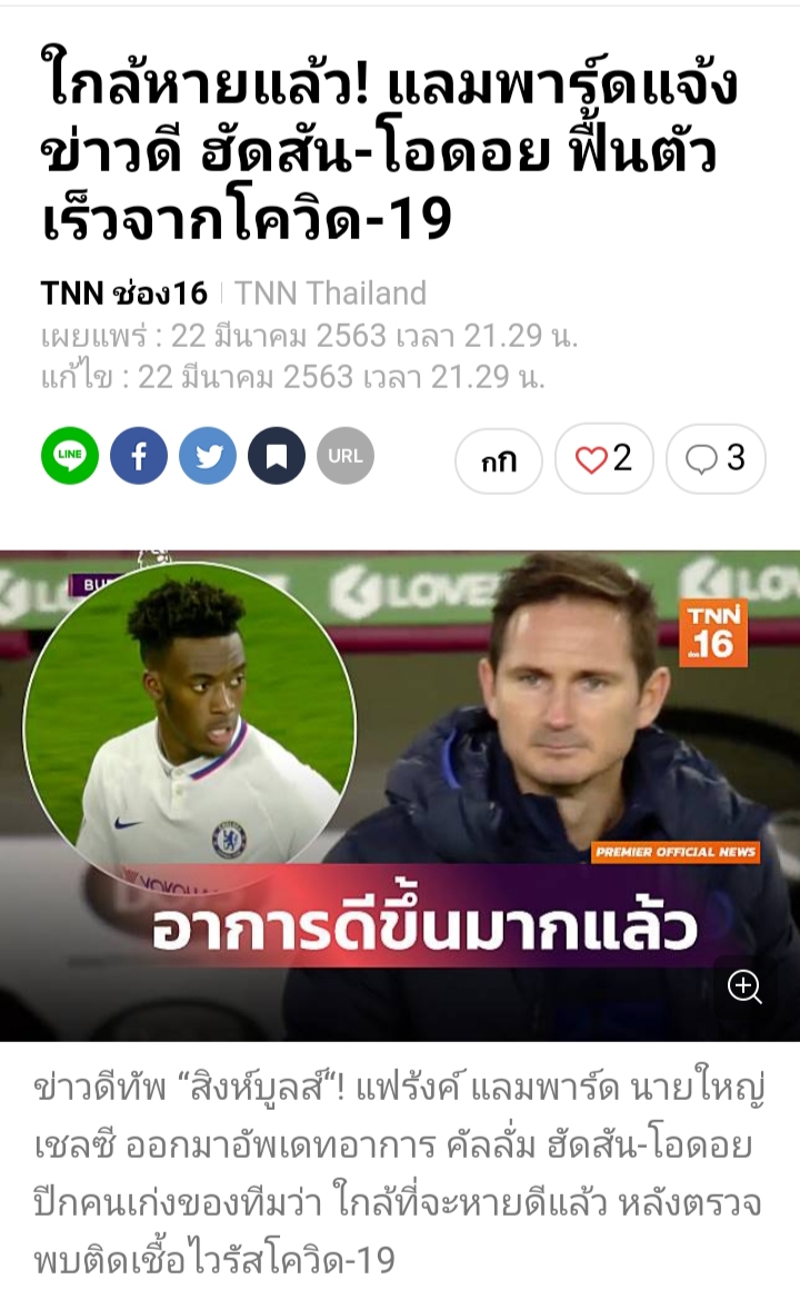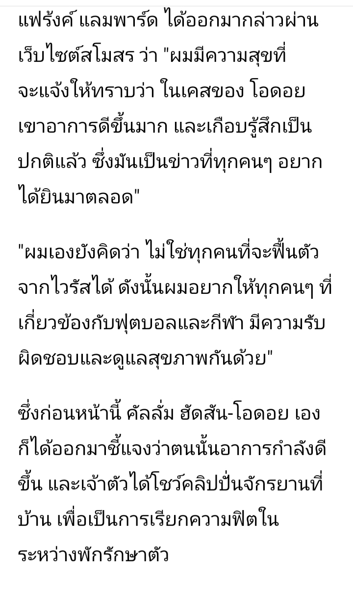 ==ไม่ใช่วัยเสี่ยง....แลมพาร์ดยืนยัน โอดอยใกล้หายcovidแล้ว==