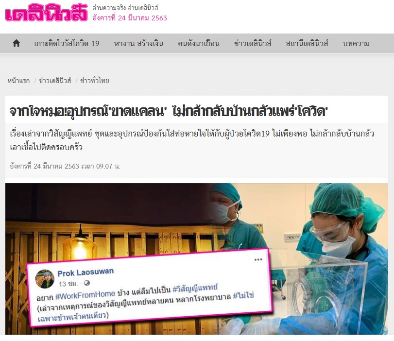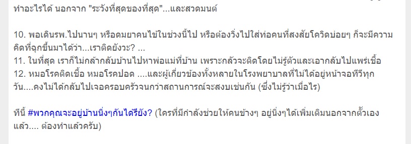 ถ้ายังไม่ติดเชื้อก็อยู่บ้านกันนะ แม้แต่หมอยังไม่กล้ากลับบ้านเพื่อครอบครัว สงสารหมอเถอะ