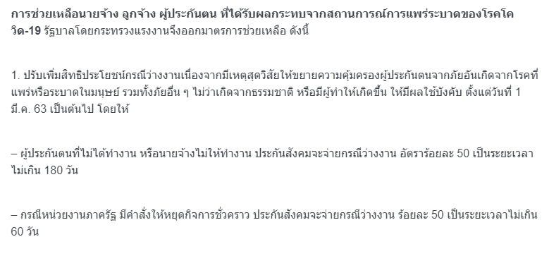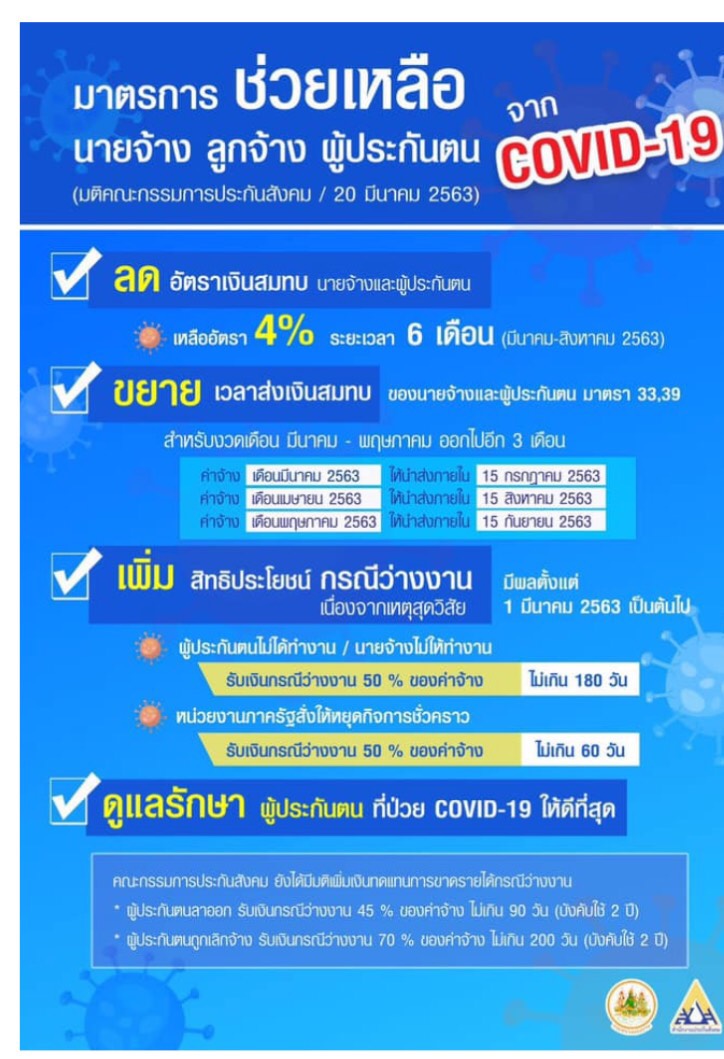 มาตรการช่วยเหลือของประกันสังคม เนื่องจาก COVID 19