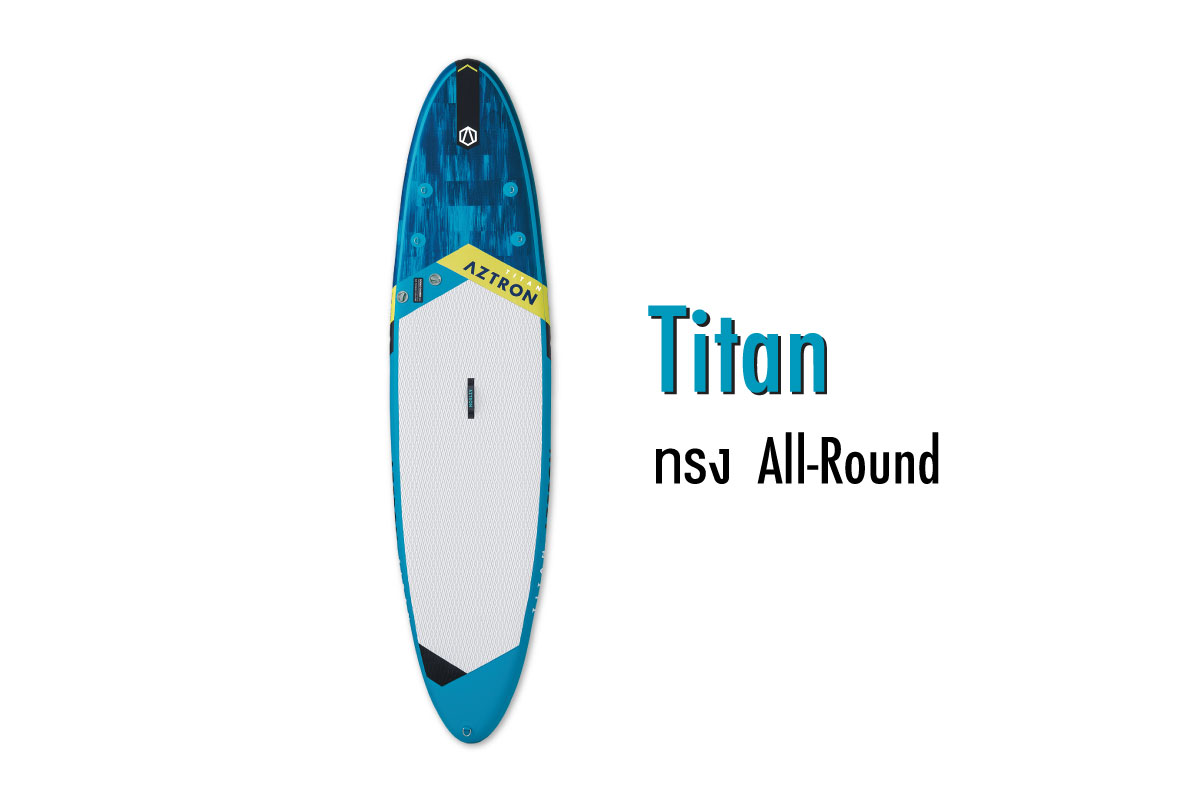 เริ่มที่ตัวแรกกันที่บอร์ดยืนพายรุ่น Titan เป็นทรง All-Round ที่มีขนาดใหญ่ที่สุด เรียกว่าเป็นตัวท็อปของ Aztron All-round เลยทีเดียว