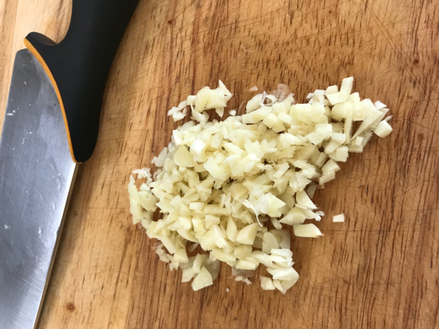 3. เตรียมผักบล็อกแคลอรี่ หอมหัวใหญ่ กระเทียมสับแบบหยาบ แครอท