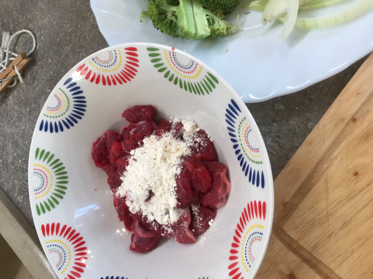 5. เอาแป้งสาลีอเนกประสงค์ ครึ่งช้อนโต๊ะ ผสมกับเนื้อที่เราเตรียมไว้