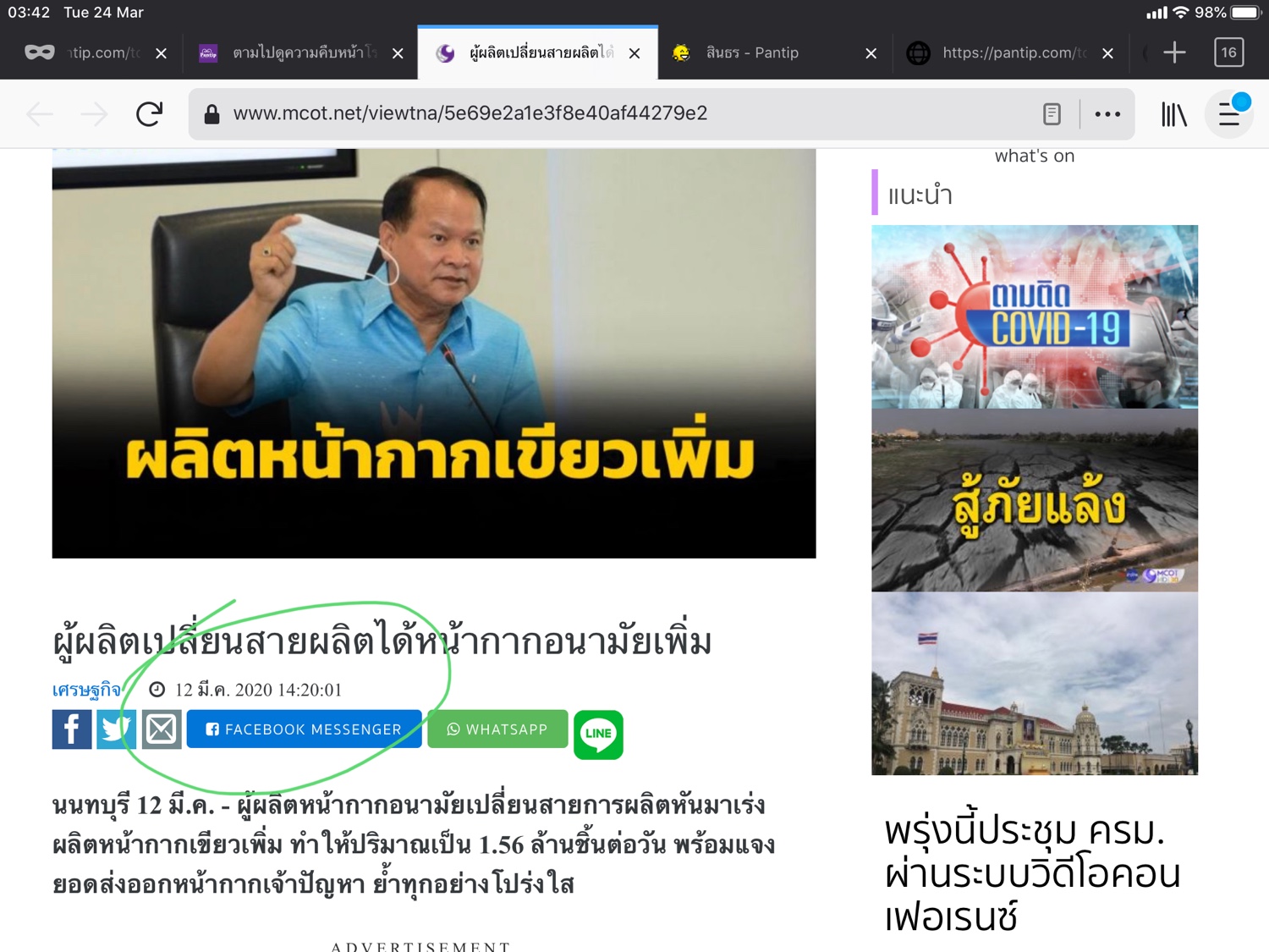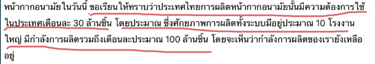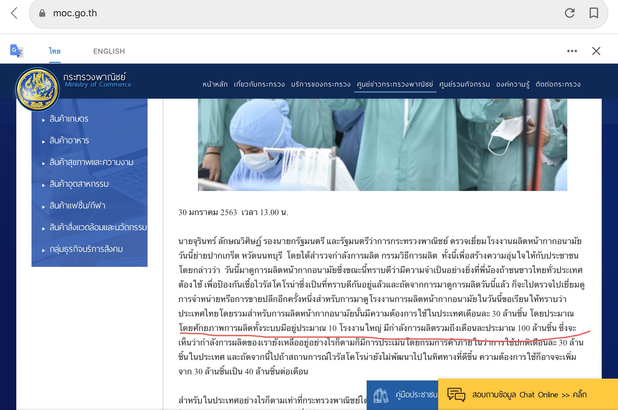 เรื่องหน้ากากอนามัยขาดแคลน. ต้องกลับไปดูข่าวตอนปลายเดือน มกราคม นายจุรินทร์ บอกเองว่า ผลิตได้เดือนละ 100ล้านชิ้น