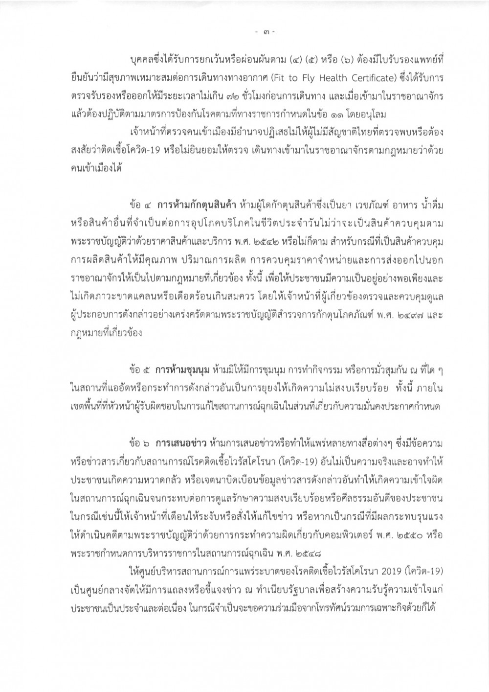 ห้ามเข้าพื้นที่เสี่ยงต่อการติดต่อเชื้อโรค-ปิดสถานที่เสี่ยง-ปิดช่องทางเข้าประเทศ-ห้ามกักตุนสินค้า-ห้ามชุมนุม
