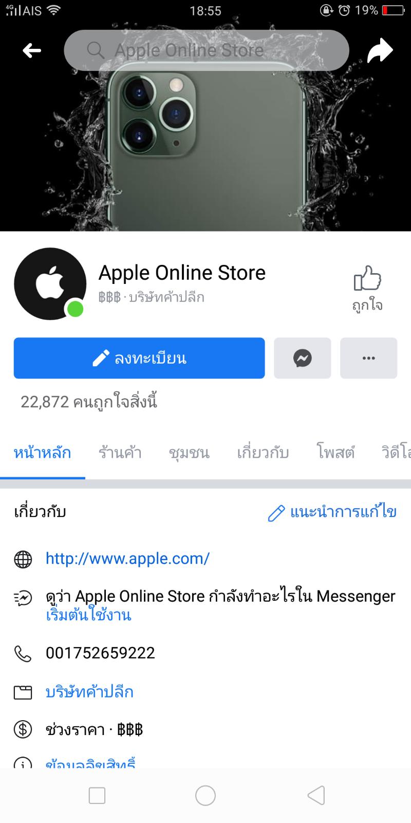 เพจ apple store ในเฟสบุ๊ก เป็นของapple store หรือเป็นตัวแทนจำหน่ายครัจ