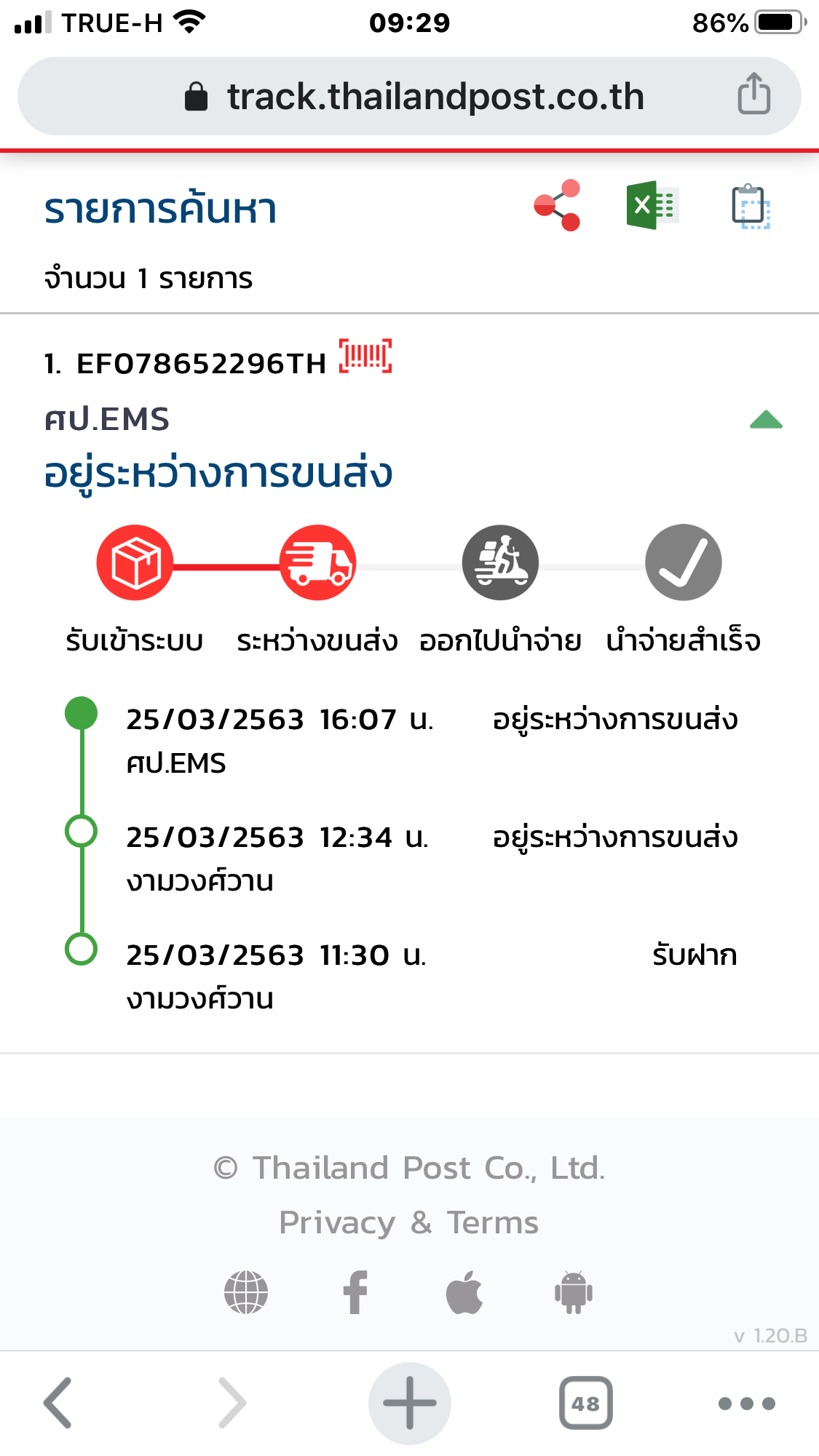 ขึ้นแค่ฝากมาจากต้นทาง อึดอัดค่ะ รอของสำคัญมากแต่เช็คสถานะของไม่ได้ ED924428408th