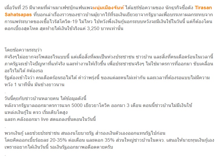 แฉ! ชาวบ้านรอเงินเยียวยา 5,000 ไม่ไหว พึ่งกู้นอกระบบได้เงินวันนี้เจอหักเหลือ 3,250 บ.