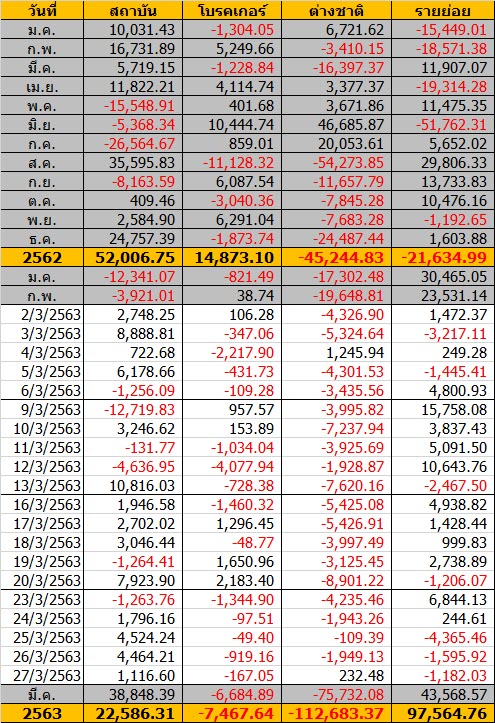 Sinthorn Summary 27/3/2563 : ต่างชาติขายสุทธิ 232.48 ลบ.
