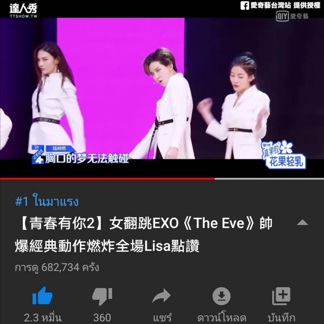 ส่วนอีกคลิปก็ปังไม่แพ้กัน ติดเทรนไทยมาเกือบทั้งวันไต่ระดับมาเรื่อยๆ กับคลิปสอนเต้นของเมนเทอร์ลิซ่า กับเด็กฝึกที่ทั้งเก่ง เท่ คูล และเซ็กซี่ กับเพลง The Eve