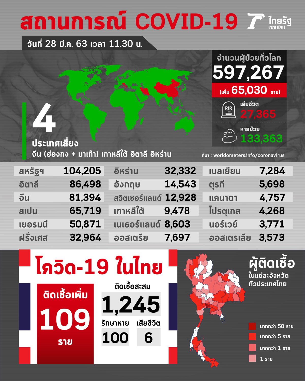 🔴ไทยพบผู้ติดเชื้อ 'โควิด-19' เพิ่ม 5 ราย ยอดผู้ป่วยสะสม 3,780 ราย เมื่อวันที่ 31 ต.ค. 63 เพจเฟซบุ๊ก ศูนย์ข้อมูล COVID-19 รายงานสถาน การณ์แพร่ระบาดของโรคโควิด-19 ประจำวัน ว่า ประเทศไทยพบจำนวนผู้ติดเ