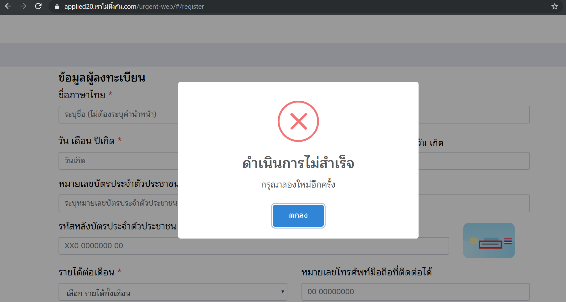 มีใครลงทะเบียนเราไม่ทิ้งกัน รับเงิน 5,000 บาท แล้วขึ้น ERROR ตามภาพบ้างคะ ??