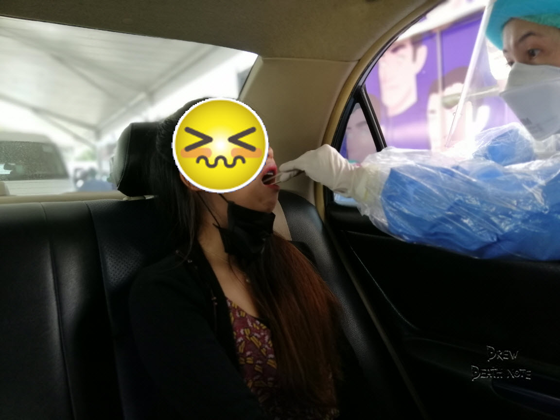 หลังจากเริ่มมีอาการมากขึ้น (ก่อนหน้าไปตรวจ 2-3 วัน) อาการที่เพิ่มคือ ไข้เพิ่มเป็น 37.0-37.6 ปวดหัวมากขึ้น มีอาการเหนื่อยหอบ อ่อนเพลีย มีอาการไอแห้งๆ และรู้สึกเจ็บๆในคอ (ปกติแฟนผมก็เป็นไข้บ่อยๆ ปวดหัวบ่อยๆ เป็นประจำมาตั้งนานแล้ว พอมีอาการก็เลยสับสนว่าป่วยแบบปกติ หรือป่วยเพราะ Covid หรือแค่ประสาทเสียเพราะ Covid กันแน่) แต่ด้วยความไม่ประมาทก็เริ่มแจ้งที่ทำงานและเลิกไปเดินตลาด และไปหาหมอที่ รพ.รัฐ ซึ่งหมอก็สอบถามอาการแล้วก็มีความเห็นว่าอาการคล้าย Covid-19 แต่ทาง รพ. ไม่สามารถตรวจให้ได้เพราะไม่ใช่กลุ่มเสี่ยง 3 กลุ่ม คือ เป็นหรือเป็นคนใกล้ชิดของคนที่ไปสนามมวย เที่ยวสถานบันเทิง และกลุ่มที่กลับจากต่างประเทศ คุณหมอจึงแนะนำให้ไปตรวจที่ รพ.เอกชน เลยหาข้อมูลและว่าจะไปตรวจ Drive Thru Test ที่ รพ.รามคำแหงครับ