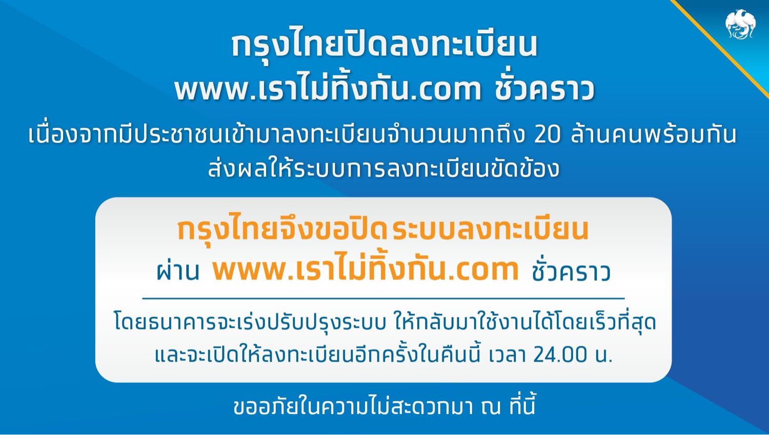 5.ลงทะเบียนได้ไม่มีกำหนด ไม่ต้องรีบ เพราะระบบอาจจะล่มได้