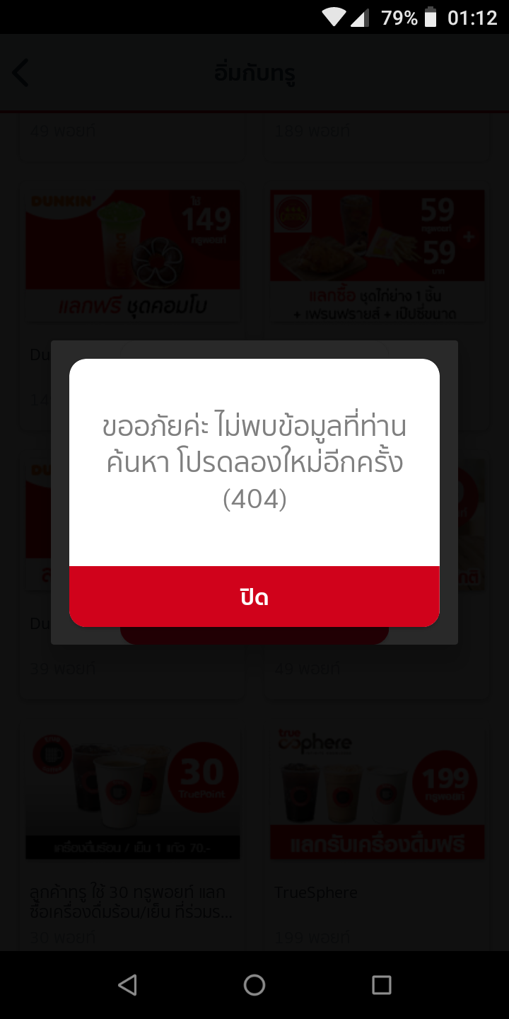 มีปัญหากับการกดเข้าไปที่แลกแต้ม true point บางตัว