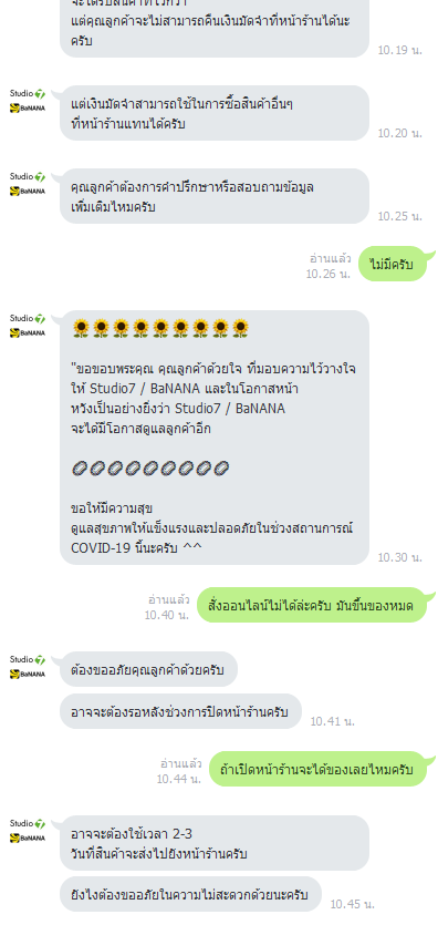 แต่แล้วพอรอของได้สัก 2-3 วัน ห้างโดนสั่งประกาศปิด จึงทำให้ร้านต้องปิดด้วยเราก็เลย ทักไปสอบถามทางไลน์