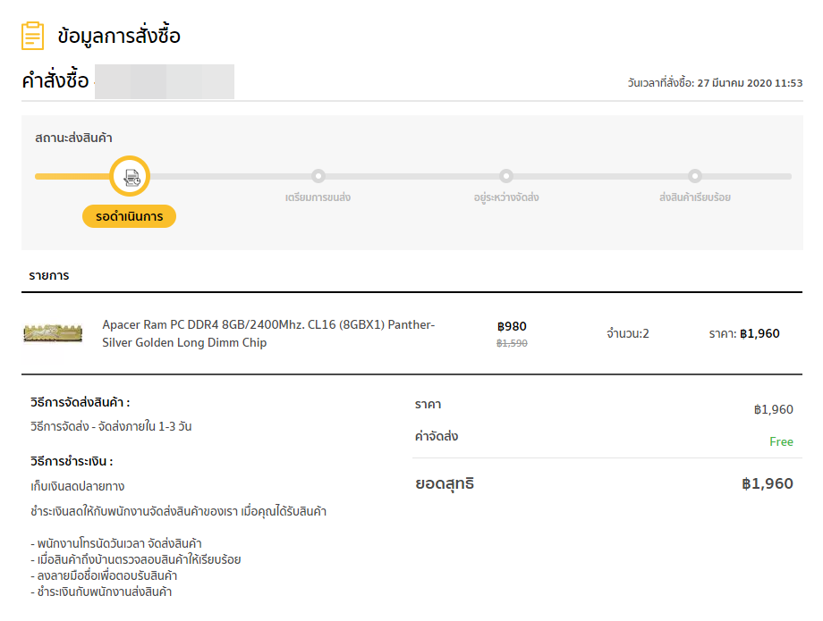 แต่ก็รอมา 2 วัน จากวันที่สั่งถึงวันที่ตั้งกระทู้ 29 มีนาคม แต่ไม่ขยับอะไรเลย