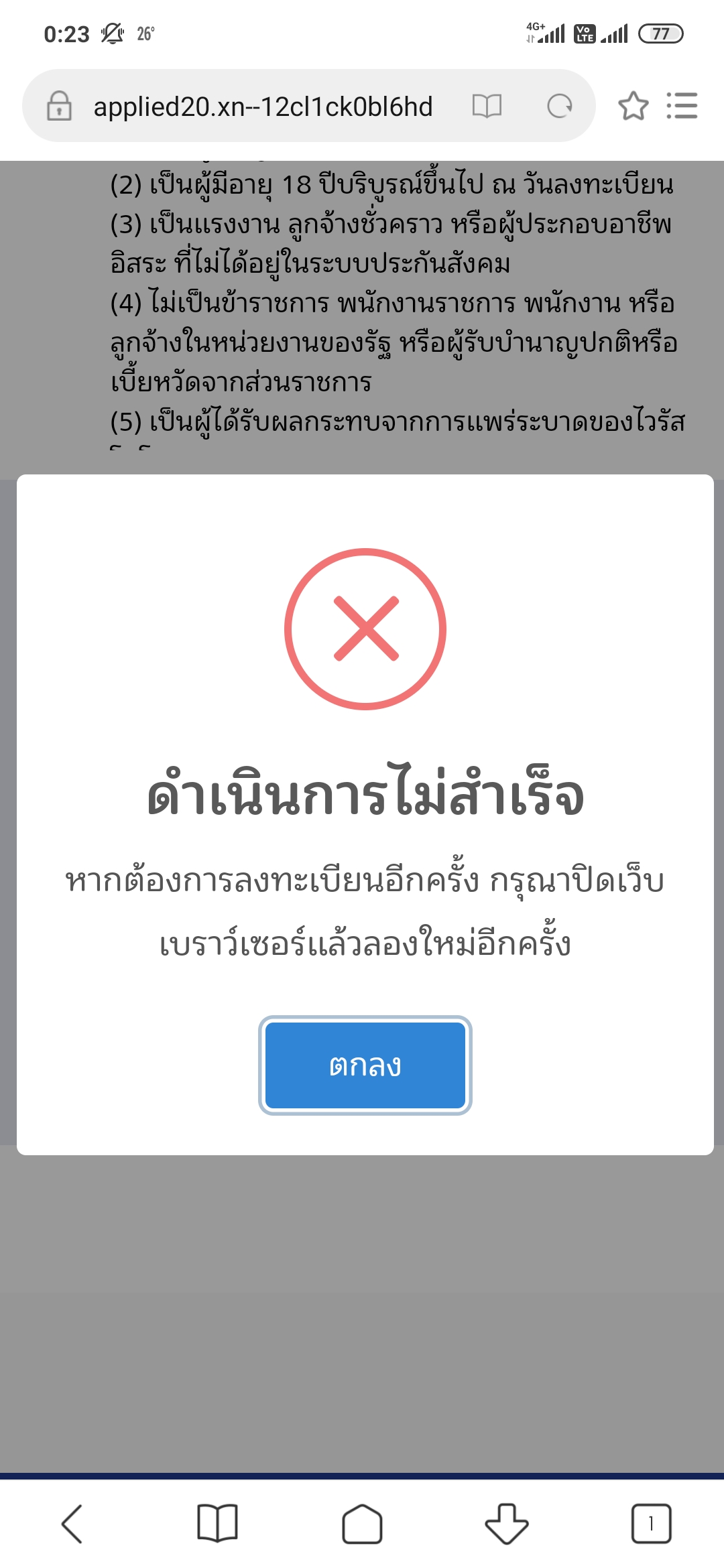 วันนี้ทั้งวัน เข้าเว็บลงทะเบียน เราไม่ทิ้งกันไม่ได้เลย จนถึงเวลานี้ก็ไม่ได้