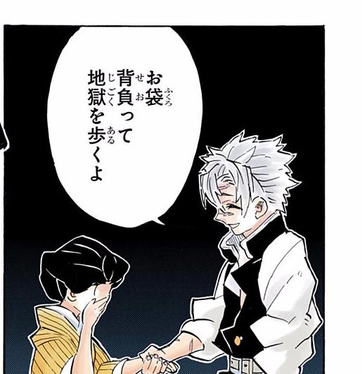 - กิยูพอมาเห็นทันจิโร่ที่แน่นิ่งไปก็รู้สึกผิดที่ไม่สามารถปกป้องคนที่สำคัญกับตัวเองได้(ซ้ำรายซาบิโตะ)