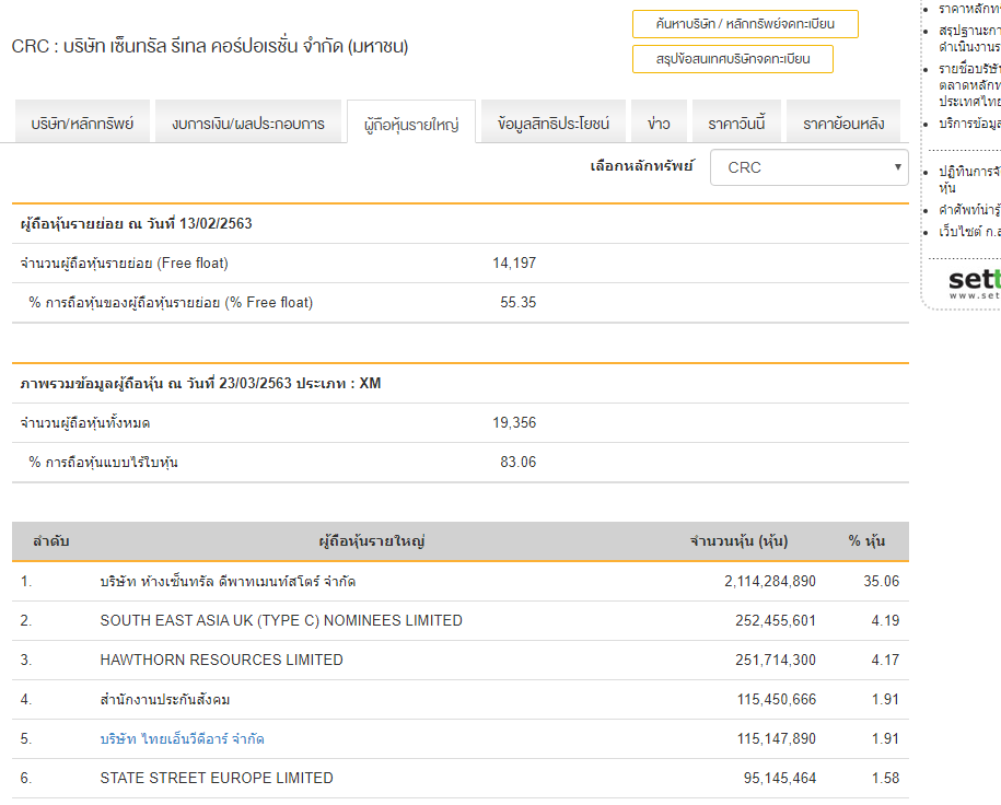 เห็นกองทุนประกันสังคม ยังถือหุ้น CRC อยู่