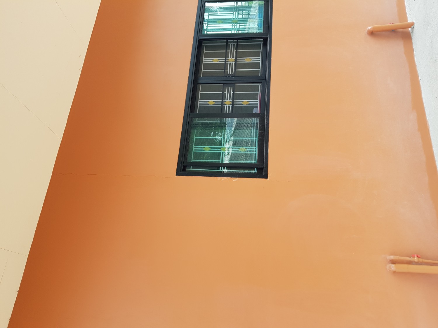 ปรึกษา รอยร้าวผนังบ้าน ดังรูป ที่แนบไว้นี้คะ บ้านชั้นที่3 มีดาดฟ้า (แต่ที่บ้านตอนสร้าง ใช้เหล็กเส้นใหญ่มาก)