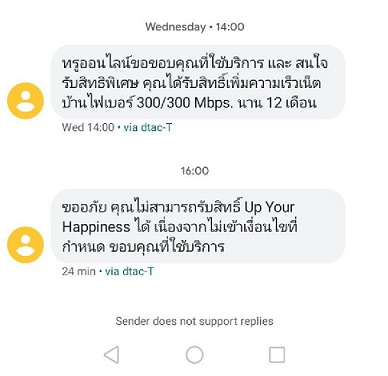 พอมาวันนี้ได้ 16.00 มี sms มาบอกว่าไม่สามารถรับสิทธิ์ได้