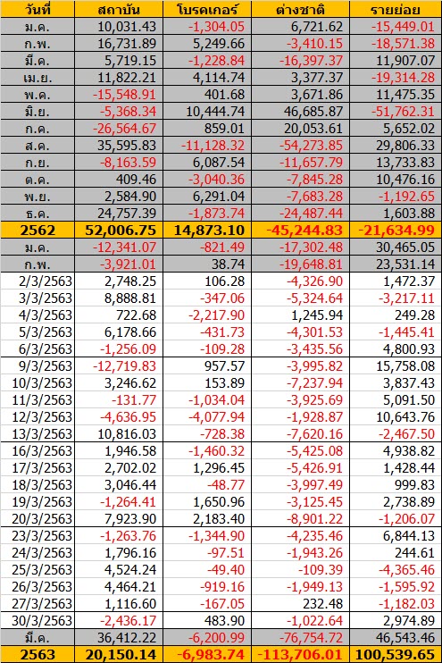 Sinthorn Summary 31/3/2563 : ต่างชาติขายสุทธิ -1,648.90 ลบ.