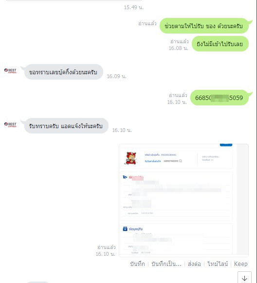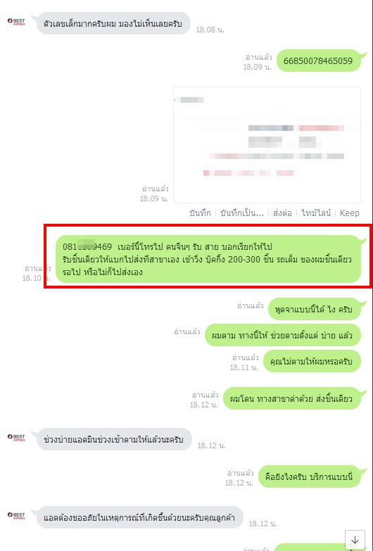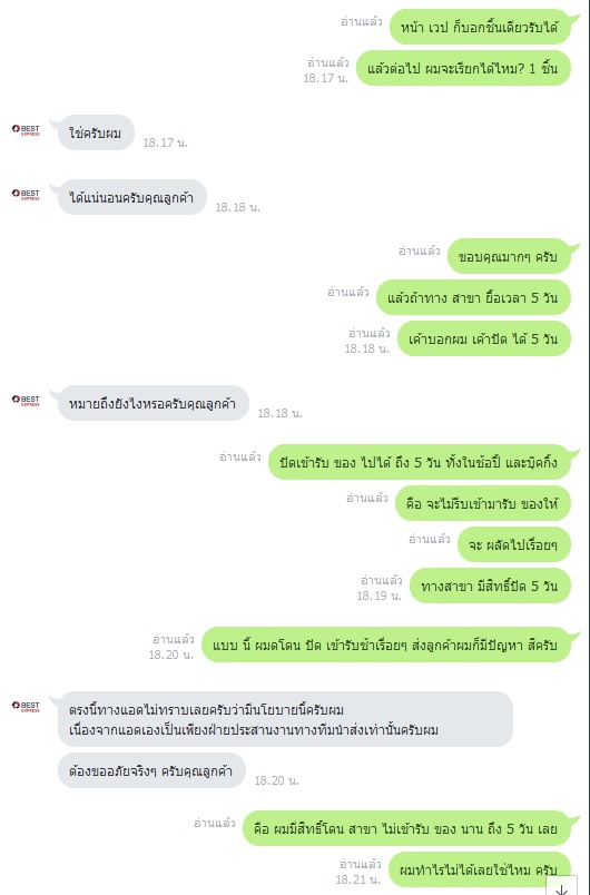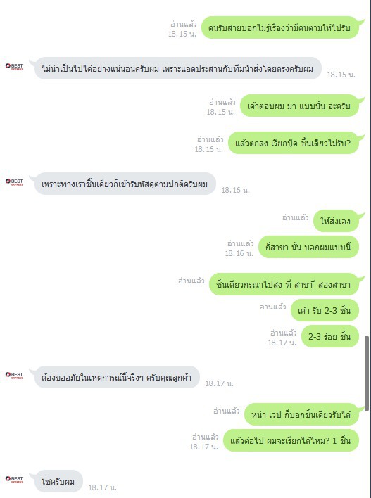 บริการขนส่งเบส บอกว่าบุ๊คชิ้นเดียวให้ไปส่งที่สาขา