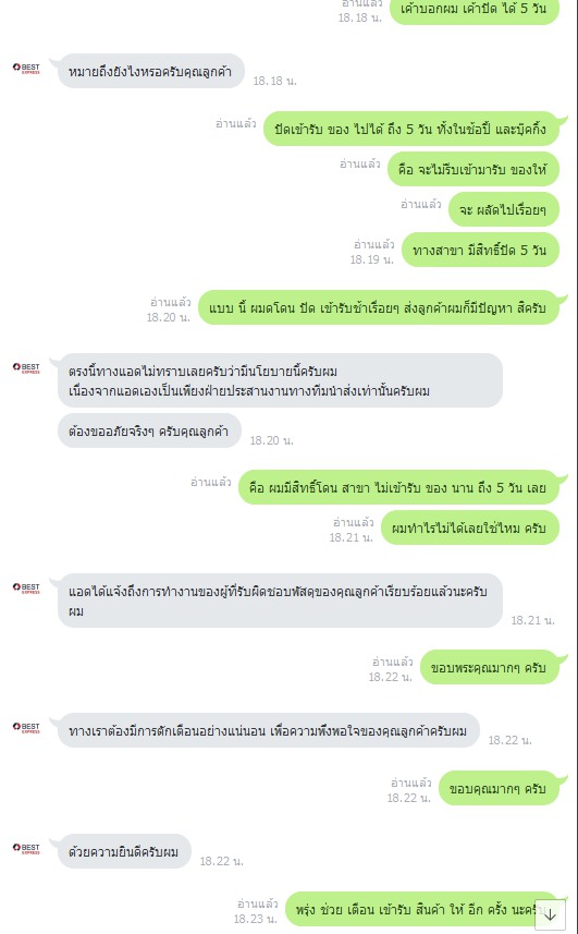 และขอขอบคุณสาขาปทุมวัน ที่บริการดี ยิ้มแย้ม เข้ารับไวส่งไว จึงอยากให้ใช้บริการเบสเรื่อยๆ ทำให้คิดว่าเบสส่ง 1 ลังไม่มีปัญหา