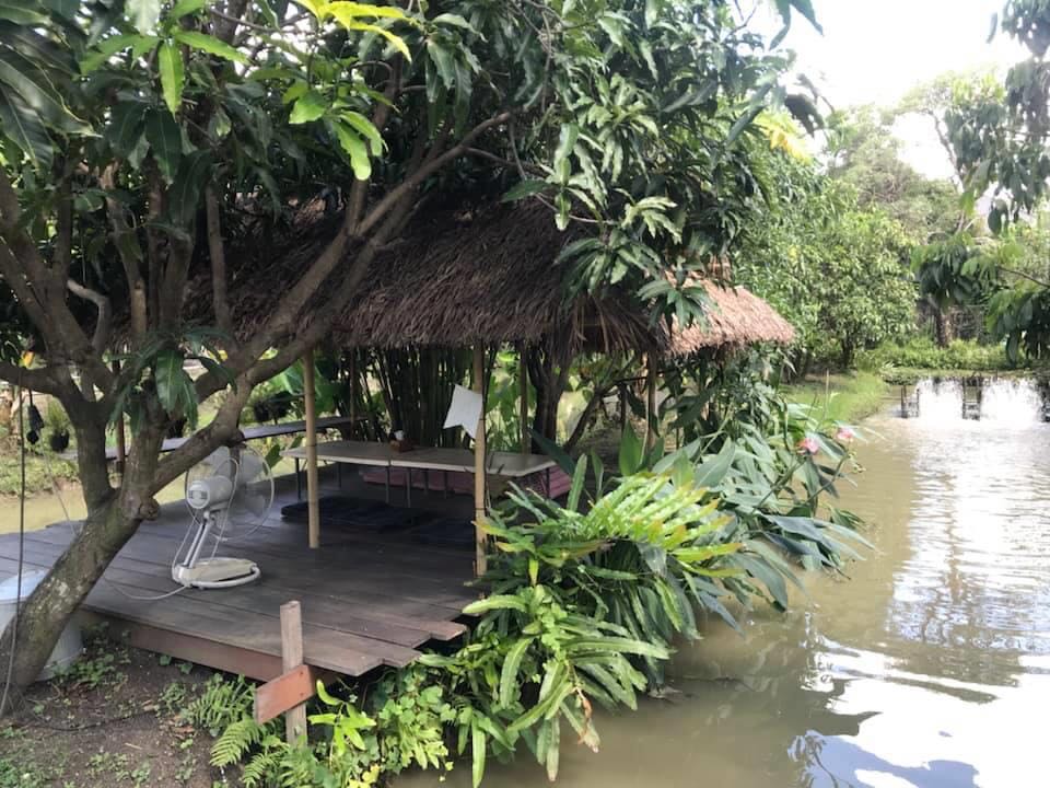 หรือถ้าอยากได้บรรยากาศดีๆ ก็นั่งด้านนอกเป็นซุ้มๆ ถ่ายรูปสวย ติดน้ำ หรือใครอยากจะพายเรือก็ได้จ้า เป็นคลองเล็กๆ มีต้นมะม่วง ลิ้นจี่ บรรยากาศดีจัดเต็มเลยค่ะ