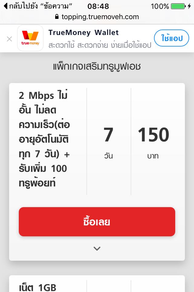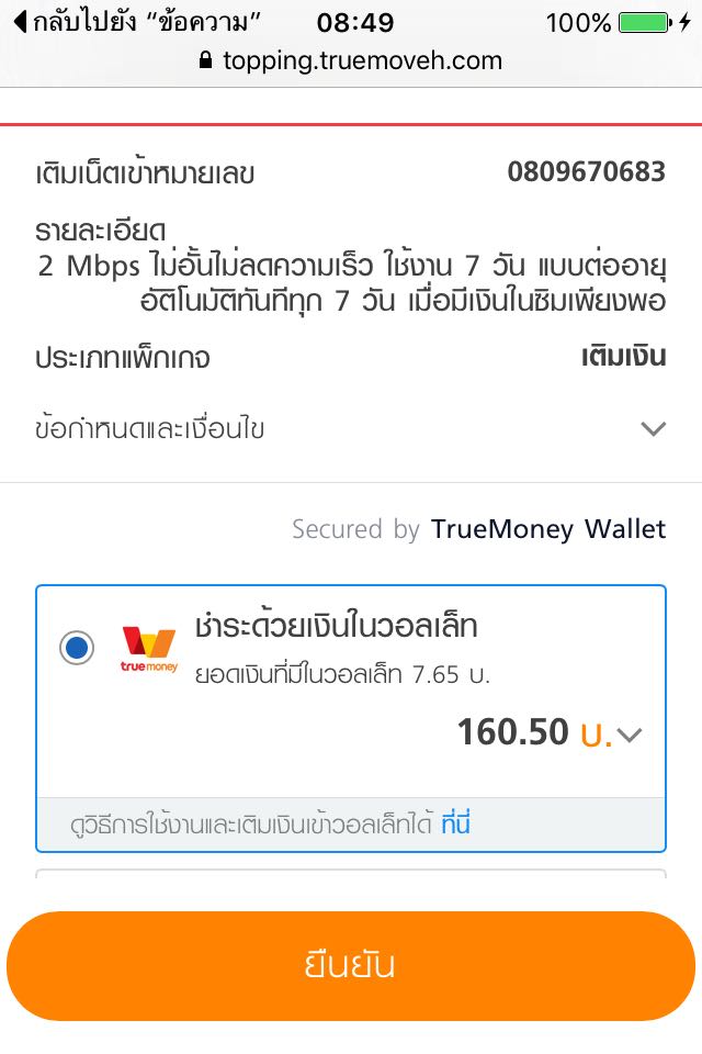 ลักษณะก็คือ มีข้อความจากทรูส่งเข้ามาพร้อมกับลิ้งค์ พอกดเข้าไปในลิ้งค์ ก็จะเจอกับหน้านี้