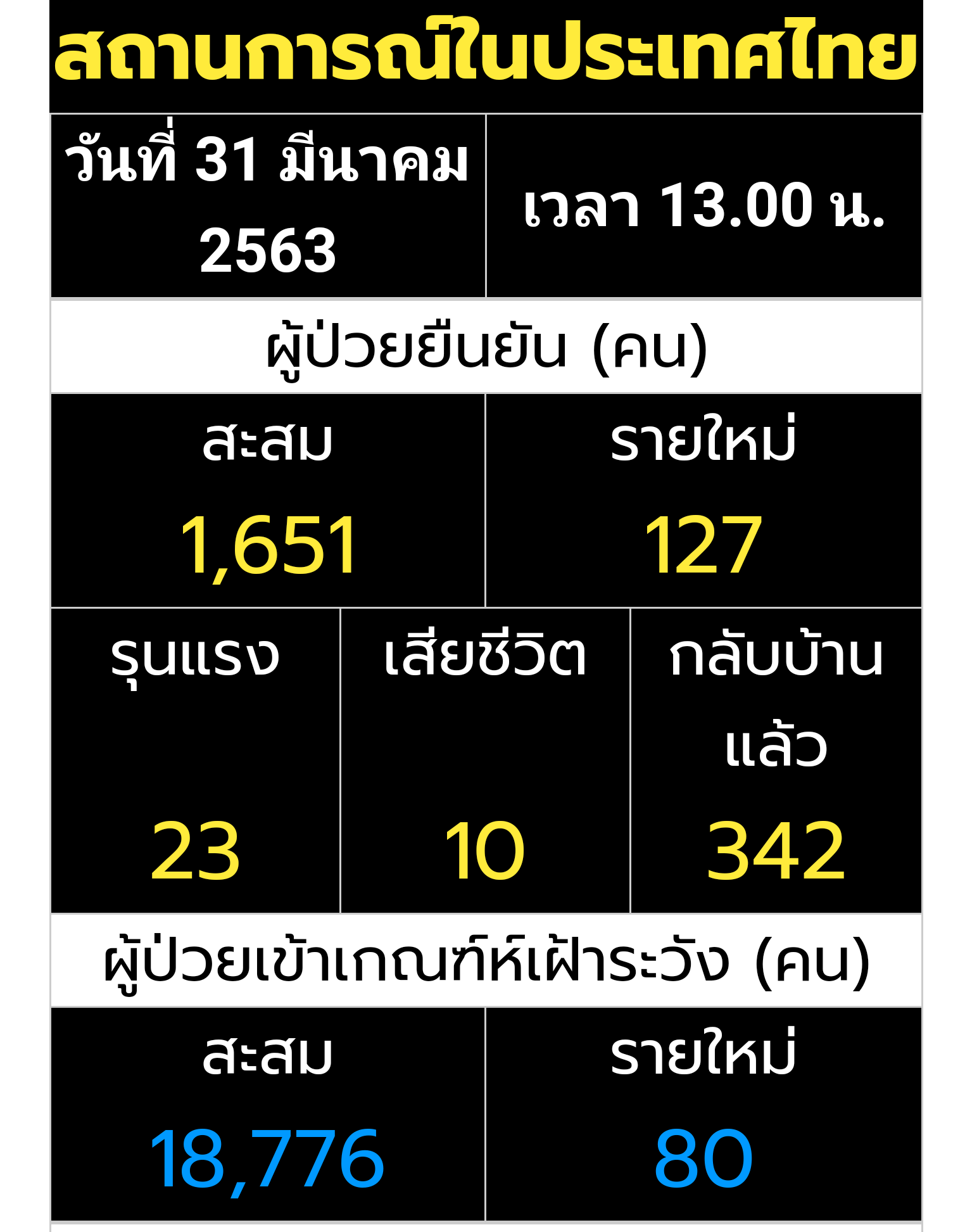 วันนี้ (31 มี.ค.) ที่ทำเนียบรัฐบาล พล.อ.ประยุทธ์ จันทร์โอชา นายกรัฐมนตรีและรมว.กลาโหม กล่าวภายหลังเป็นประธานการประชุมคณะรัฐมนตรี(ครม.) ถึงกรณีผ่านมา 7 วันหลังคนกรุงเทพฯ เดินทางกลับภูมิลำเนา และสถานการณ์ตัวเลขผู้ติดเชื้อเริ่มมีแนวโน้มเพิ่มสูงขึ้น จนมีเสียงเรียกร้องให้ห้ามเด็ดขาดในการเคลื่อนย้ายประชาชนข้ามเขตจังหวัด ว่า การที่พบผู้ติดเชื้อเพิ่มมากขึ้นเป็นมาตรการหนึ่งที่อาจจะมองได้อีกแง่มุมว่า เราได้มีการตรวจสอบคัดกรองมากยิ่งขึ้น ประชาชนที่รู้ว่าตัวเองอยู่ในกลุ่มเสี่ยงก็มาพบแพทย์มากยิ่งขึ้นและมีโอกาสตรวจพบมากขึ้น ถือเป็นสิ่งสำคัญที่ทุกคนต้องเข้าใจตรงนี้ ขณะที่ใครไม่ได้อยู่ในกลุ่มเสี่ยงและดูแลตัวเองดีแล้วก็ไม่จำเป็นต้องไปตรวจเชื้อ ซึ่งขอให้เข้าใจด้วยว่าเราจำเป็นต้องมีมาตรการควบคุมการใช้จ่ายอุปกรณ์ทางการแพทย์ให้เพียงพอสำหรับผู้ที่ติดเชื้อจริงๆและผู้ที่มีความเสี่ยงจริงๆ