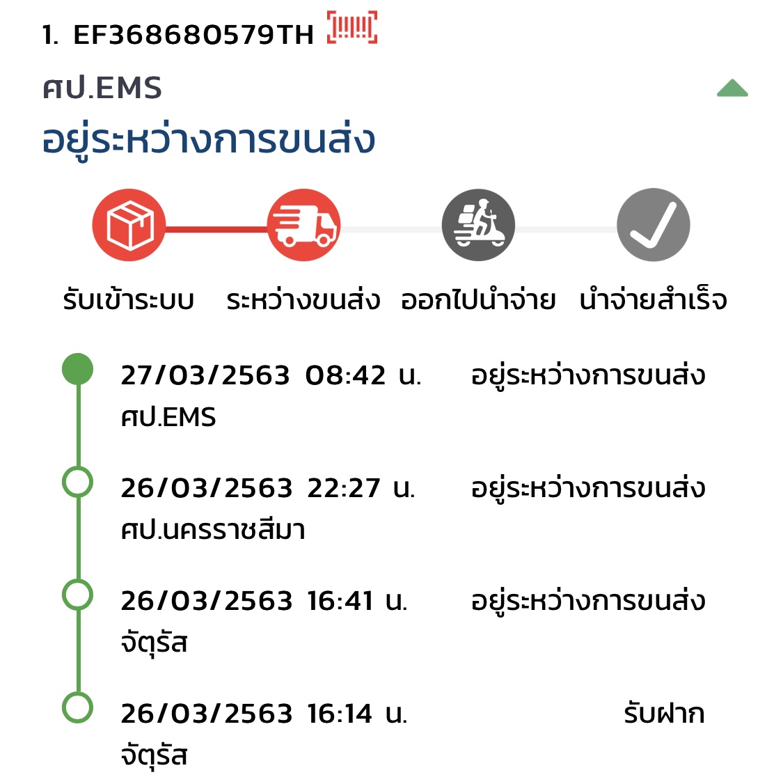 ชิ้นที่ 2 ส่งวันที่ 26 ค้างที่ ศป.ems ตั้งแต่วันที่ 27