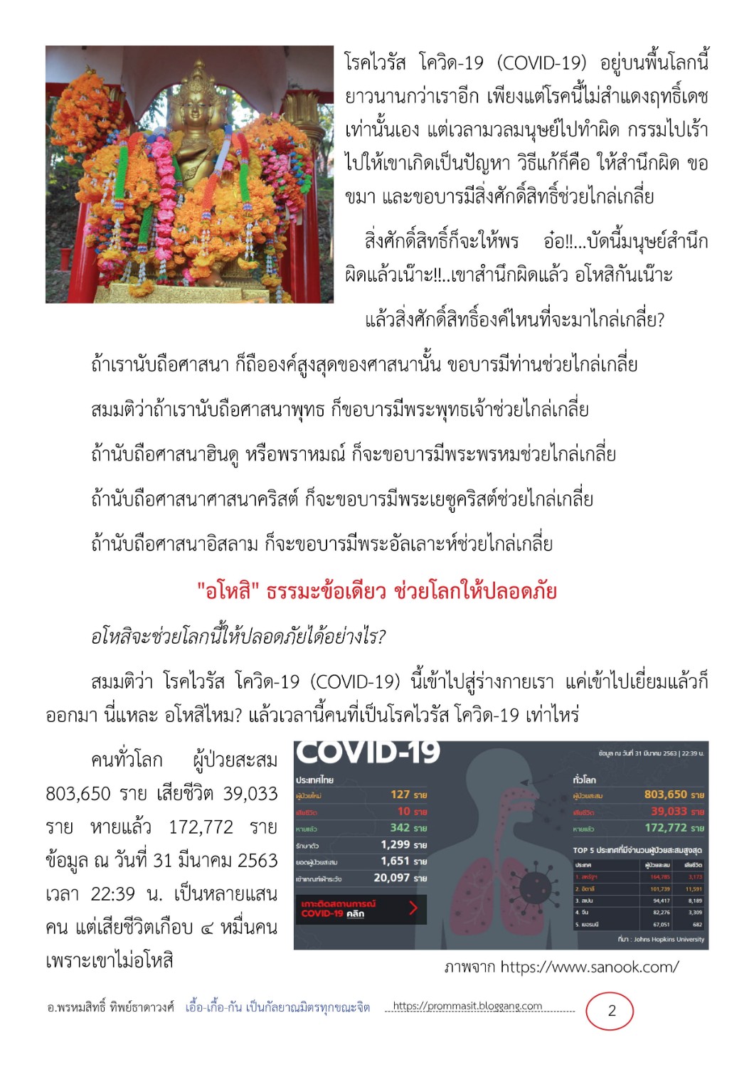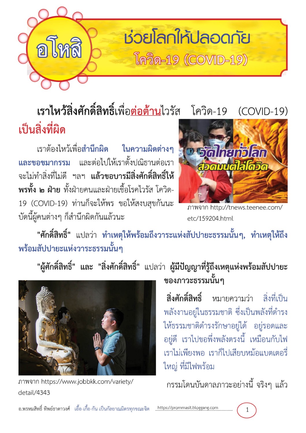 เราไหว้สิ่งศักดิ์สิทธิ์เพื่อต่อต้านไวรัส โควิด-19 (COVID-19) เป็นสิ่งที่ผิด