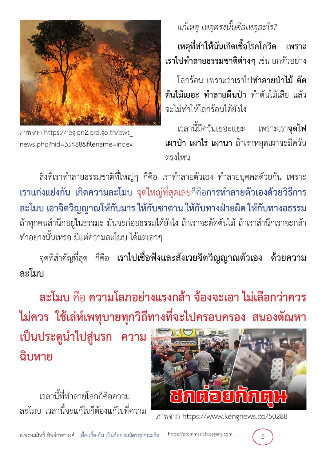 เวลานี้ที่ทำลายโลกก็คือความละโมบ เวลานี้จะแก้ไขก็ต้องแก้ไขที่ความละโมบ ไม่มีที่สิ้นสุด ถ้าเชื้อโรคไวรัสโควิดหายไปแล้ว เชื้อโรคใหม่จะมาอีกตัวก็ได้ และจะมาหนักขึ้นเรื่อยๆ