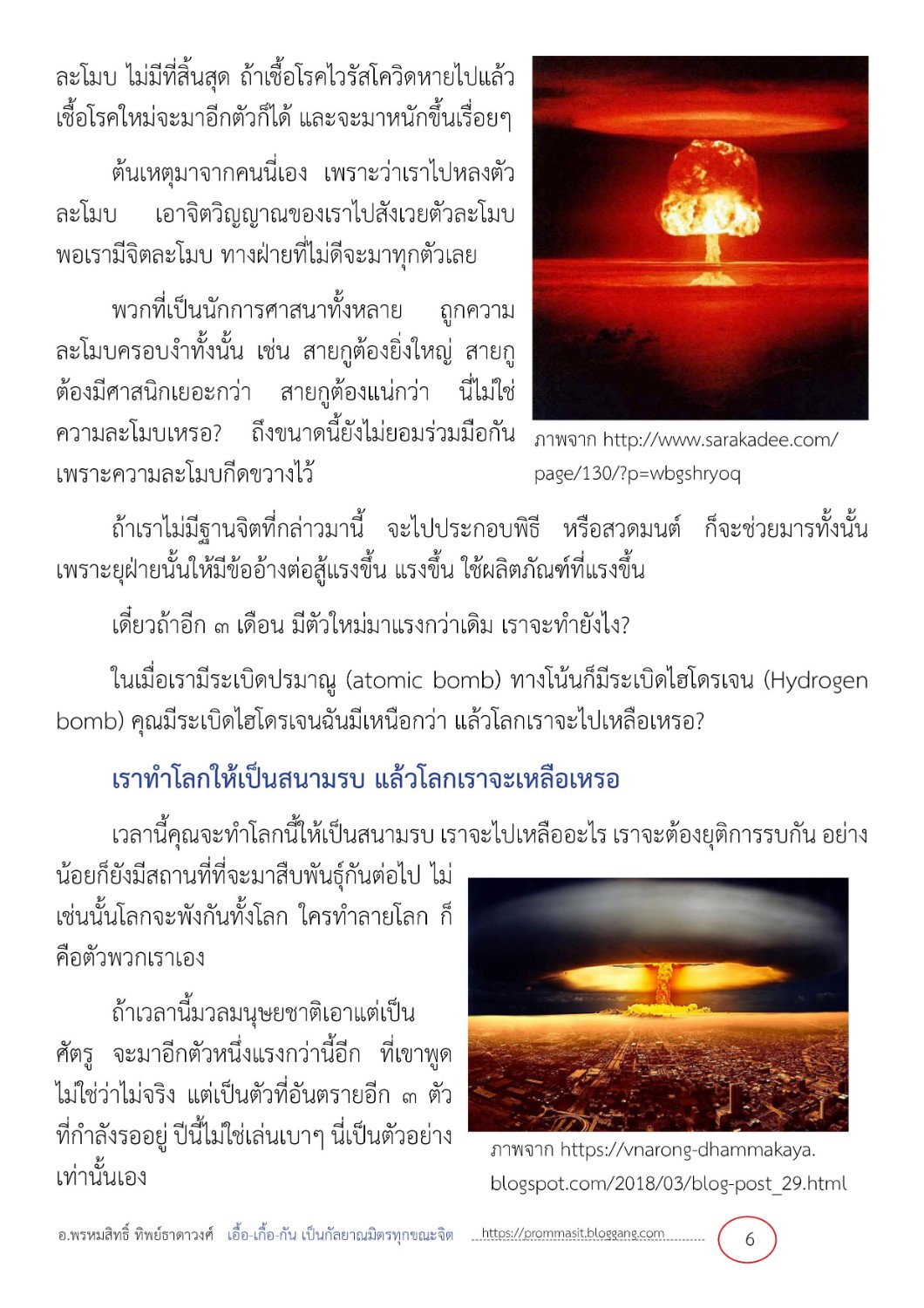 เราทำโลกให้เป็นสนามรบ แล้วโลกเราจะเหลือเหรอ