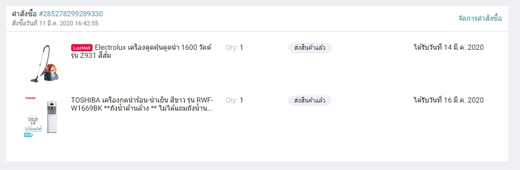 และได้รับใบกำกับภาษีเครื่องดูดฝุ่น ในวันที่ 27 มีนา ประมาณเที่ยง ทางอีเมลล์