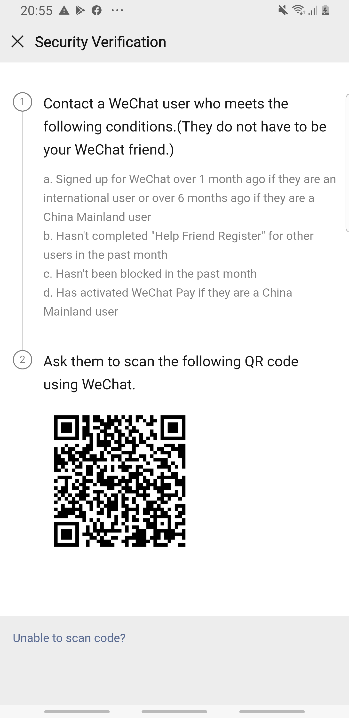 คือเราอยากเล่น WeChat แต่ไม่พี่เพื่อนสแกนให้ ขอรบกวนช่วยสแกนให้หน่อยได้ไหมคะ