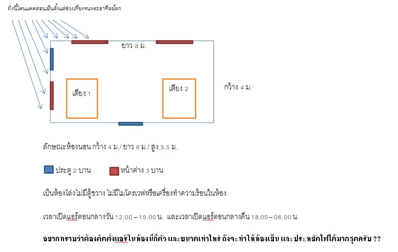 สอบถามเรื่องขนาดแอร์ในห้องนอนครับ