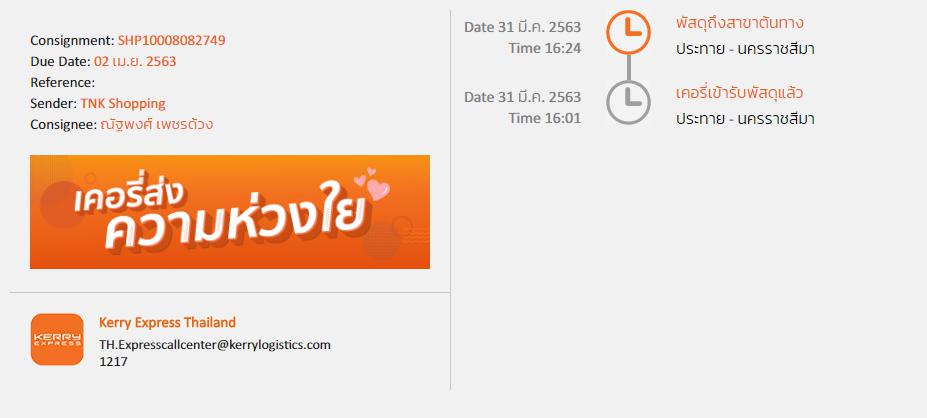 ผู้ส่งนำพัสดุมาส่งวันที่ 14 เมษา 64 (ศรีชุม ลำปาง) . . เคอรี่เข้ารับพัสดุเเล้ว 14 เมษา 64 (ศรีชุม ลำปาง) . . พัสดุของคุณอยู่ระหว่างคนส่ง 14 เมษา 64 (ชมพู ลำปาง) . . พัสดุของคุณอยู่ระหว่างคนส่ง 15 เมษา