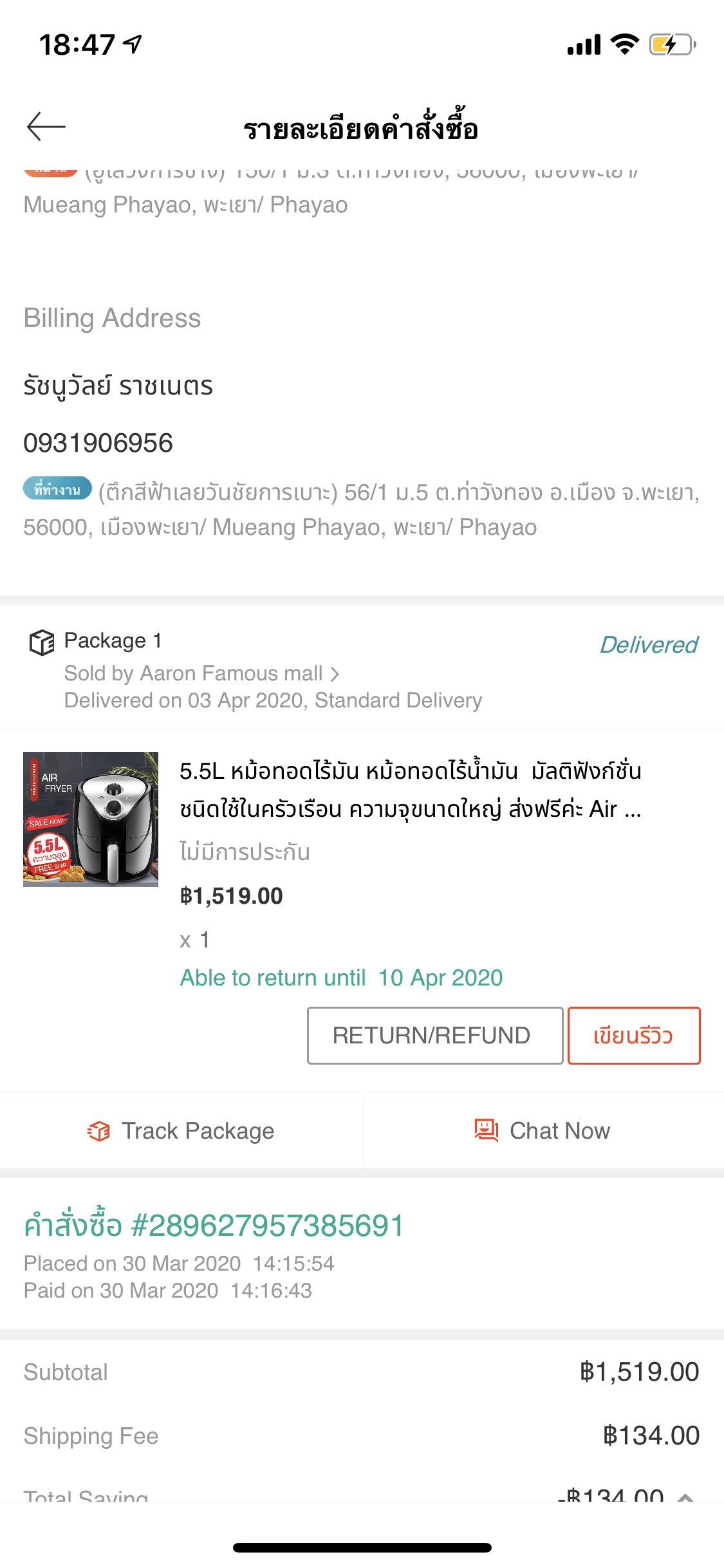 ... เราสั่ง เครื่องทอดไร้น้ำมัน ด้วยความช่วงนี้โควิดระบาด ห้างปิดเลยออกไปหาซื้อตามห้างไม่ได้ เลยกดสั่งจากร้านค้าในLazadaแล้วจ่ายเงินตัดผ่านบัตรเครดิต สินค้าที่สั่งตามรูปเลยค่ะ แล้วเราเป็นแม่ลูกอ่อนไงเวลาสั่งของให้ไปลงที่ทำงานแฟน ให้แฟนรับ ด้วยความที่แฟนไม่รู้คือก็เซ็นรับของให้ตามปกคิ แล้วสิ่งที่ได้มาคือ ปลอกแขนอันแสนบาง ตามรูปเลยค่ะ แบบนี้เราสามารถคืนของ คืนเงินได้มั้ยคะ ใครมีประสบการณ์ช่วยแนะนำทีค่ะ