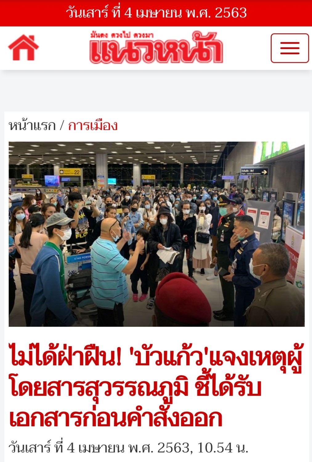 เหตุวุ่นวายที่สนามบินเมื่อวาน ( 3 เม.ย. 2563 ) คนที่อยู่ไทยบอกว่าพวกที่กลับประเทศไม่ยอมทำตามมาตรการกักตัว พร้อมกับถามว่าทำไมกระทรวงต่างประเทศปล่อยมาได้ทั้งที่มีคำสั่งงดเดินทาง 2-15 เม.ย. 2563 ล่าสุดกระทรวงต่างประเทศยืนยันว่าพวกนี้ขอหนังสือรับรองก่อนวันที่มีคำสั่งดังกล่าว