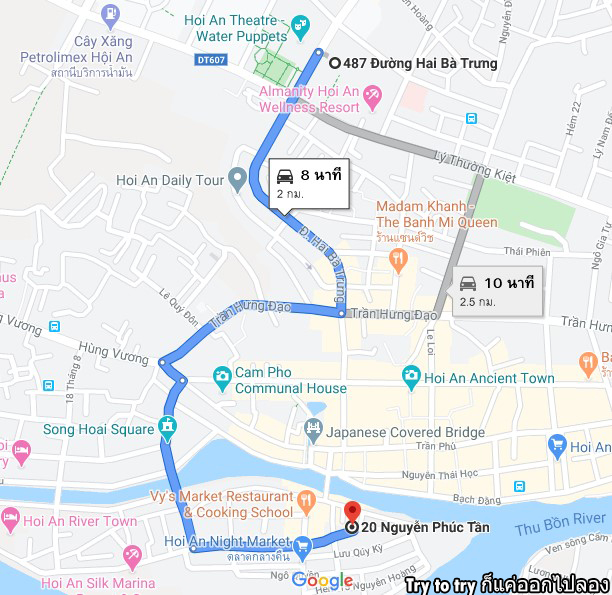 เราก็เรียก Grab ไปที่พัก ระยะทาง 2 km ราคา 32.000 VND ก็ประมาณ 55฿ หารสองก็โคตรถูก ดังนั้นก็เรียก Grab ไปเถอะจ้ะ ถูกมากกกก คือต้องบอกไว้ก่อนว่าที่ฮอยอันมันเป็นเมืองเก่าถ้าจะเข้าเมืองได้ก็ต้องเดินหรือปั่นจักรยานเท่านั้น ทางที่จะไปที่พักมันเลยต้องอ้อมไปอ้อมมาแล้วซอยก็จะเล็กมากกกกแบบที่รถเก๋งเข้าได้คันเดียวก็เต็มแล้วอะ เวลาเล็งที่พักอย่าลืมคิดถึง Grab ที่เข้าไปส่งเราด้วย ถ้าเราเล็งพลาด Grab อาจจะไปส่งได้แค่ปากทางเข้า 55555
