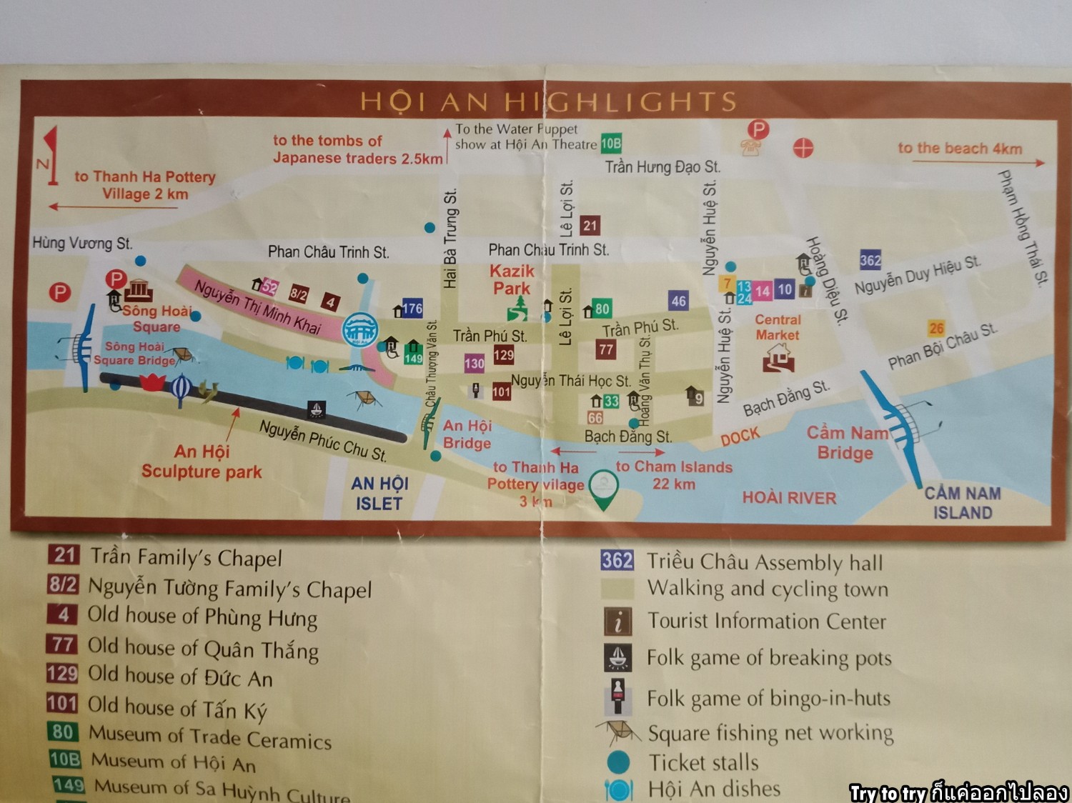 ตั๋วที่เราซื้อมาจะใช้ได้ 24 hr. แล้วเขาจะให้มาพร้อมกับแผนที่เมืองเก่าด้วย ซึ่งที่ฮอยอันเราไม่ได้ศึกษาข้อมูลอะไรใดใดมาทั้งสิ้น ไม่รู้อะไรดีอะไรเด่น เดินตามแผนที่ล้วนๆ 555555