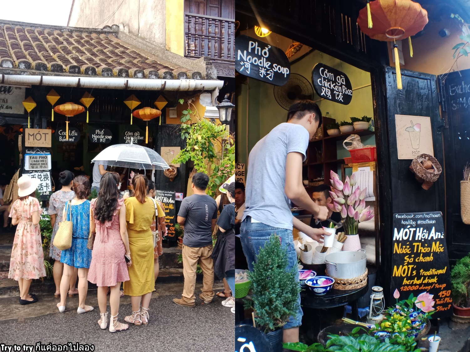 พอกินอิ่มมีแรงแล้วเราก็เดินสำรวจเมืองกันต่อ *0* จนไปเจอร้านน้ำดอกบัวที่ดังมากกกกกกกกกในฮอยอัน คือใครมาจะต้องซื้อน้ำอันนี้ถ่ายรูปลงโซเชียล แต่คนหน้าร้านคือเยอะมากกกกกกกกกกกกกกก เพื่อนเราก็เลยเข้าไปนั่งที่ร้านตรงข้ามรอ เป็นร้านของคนพิการทางการได้ยิน หลังจากเรารอคนที่ร้านน้ำดอกบัวน้อยๆ ในที่สุดเราก็แทรกตัวเข้าไปซื้อจนได้