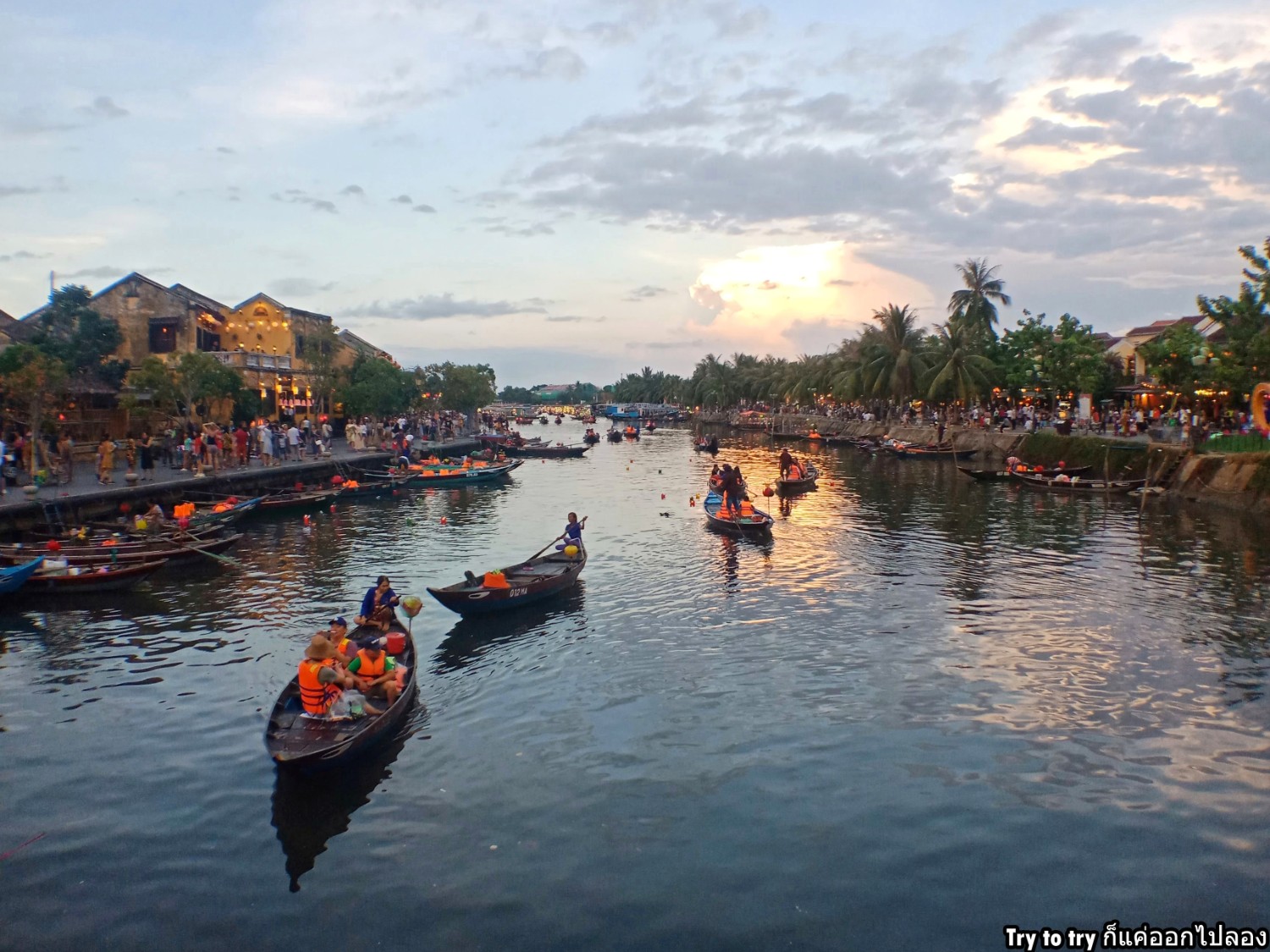 ถ่ายรูปกันเล่นแถวๆ ริมแม่น้ำนั่นแหละ จะมีคนยืนขายกระทงยืนขายแพ็คเกจล่องเรือเต็มไปหมด ด้วยความสงสัยของเพื่อนเรานางก็เดินเข้าไปเฉียดๆ ป้าที่ขายแพ็คเกจล่องเรือ ว่าราคาเท่าไหร่ ถามมาครั้งแรก 300.000 VND ตีเป็นเงินไทยก็ประมาณห้าร้อย โอ้ววววห้าร้อยกับแค่สามสิบนาที ไม่จ้าาาา