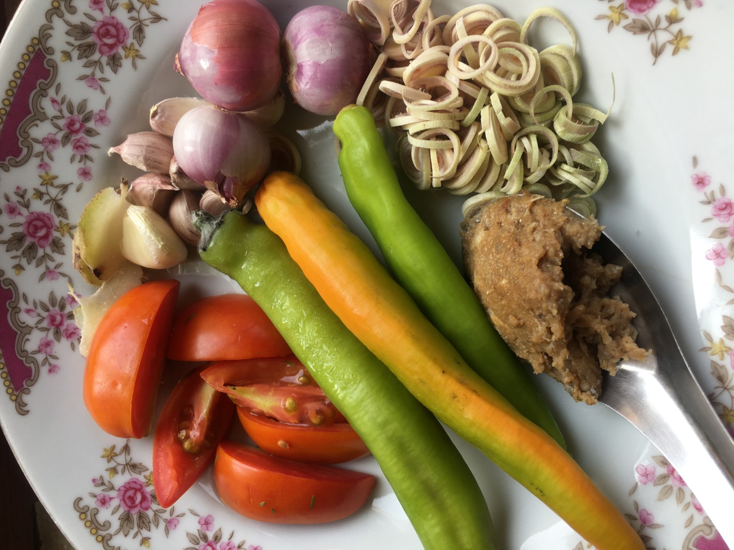 น้ำพริกแกงประกอบด้วย ข่า ตะไคร้ หอมแดง กระเทียม พริกหนุ่ม ปลาร้า มะเขือเทศ ปริมาณดังภาพครับ