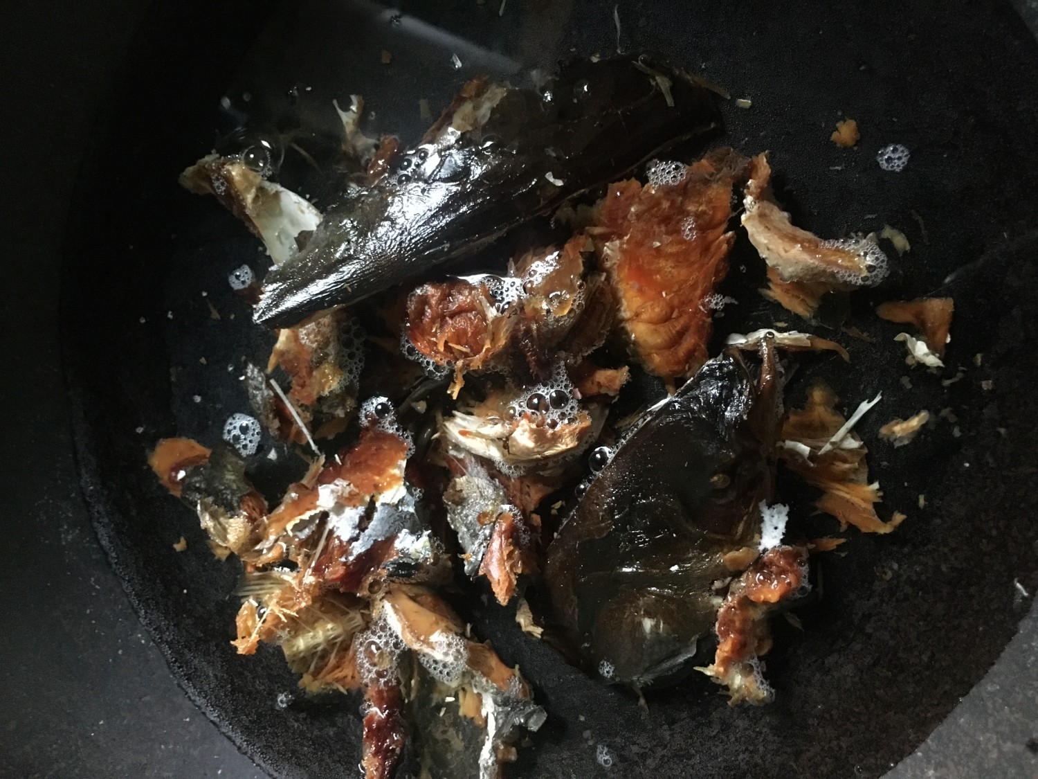 ตั้งน้ำ ใส่ปลาแห้งลงไป
