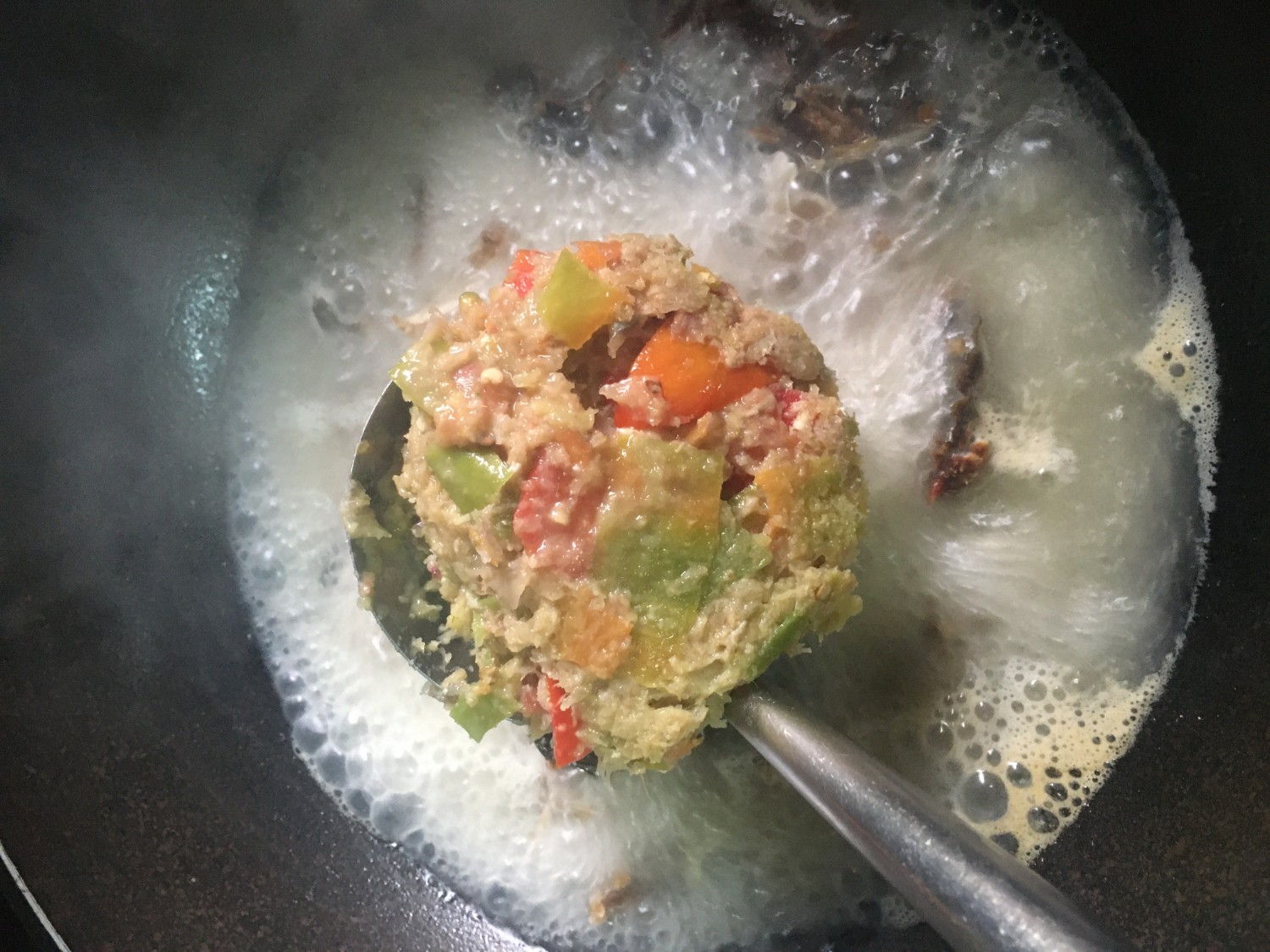 น้ำเดือดดีแล้ว ใส่น้ำพริกลงไป