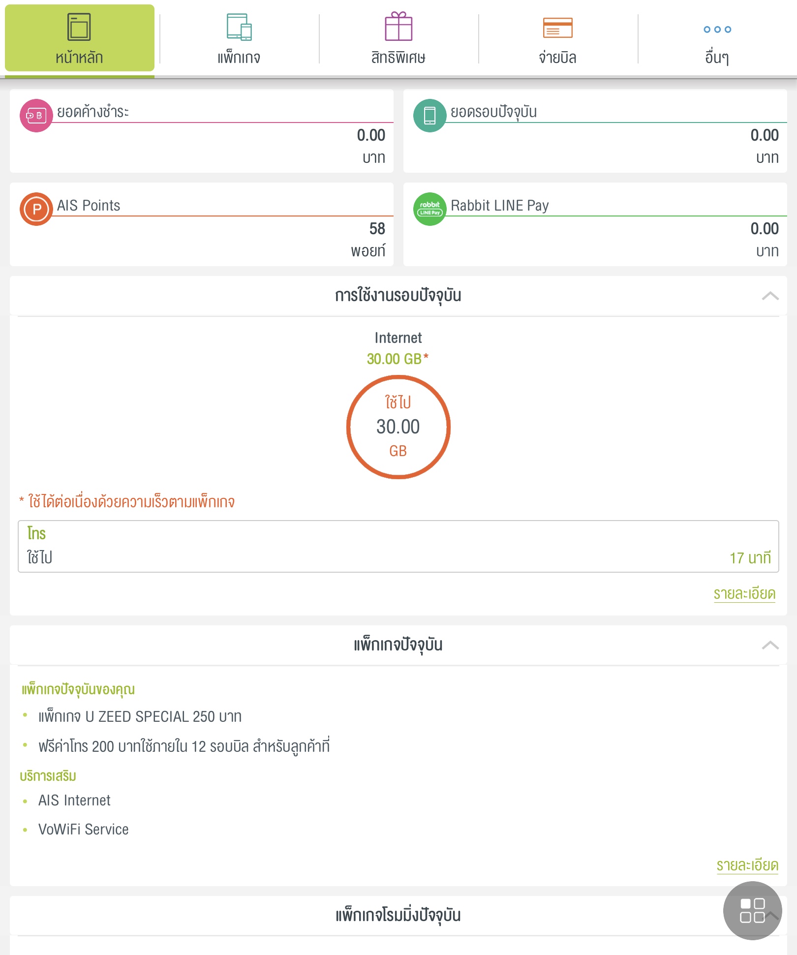 Internet ais รายเดือน 250฿ ยังใช้เน็ตไม่ถึง 30GBแต่ในระบบขึ้นว่าใช้ครบแล้ว
