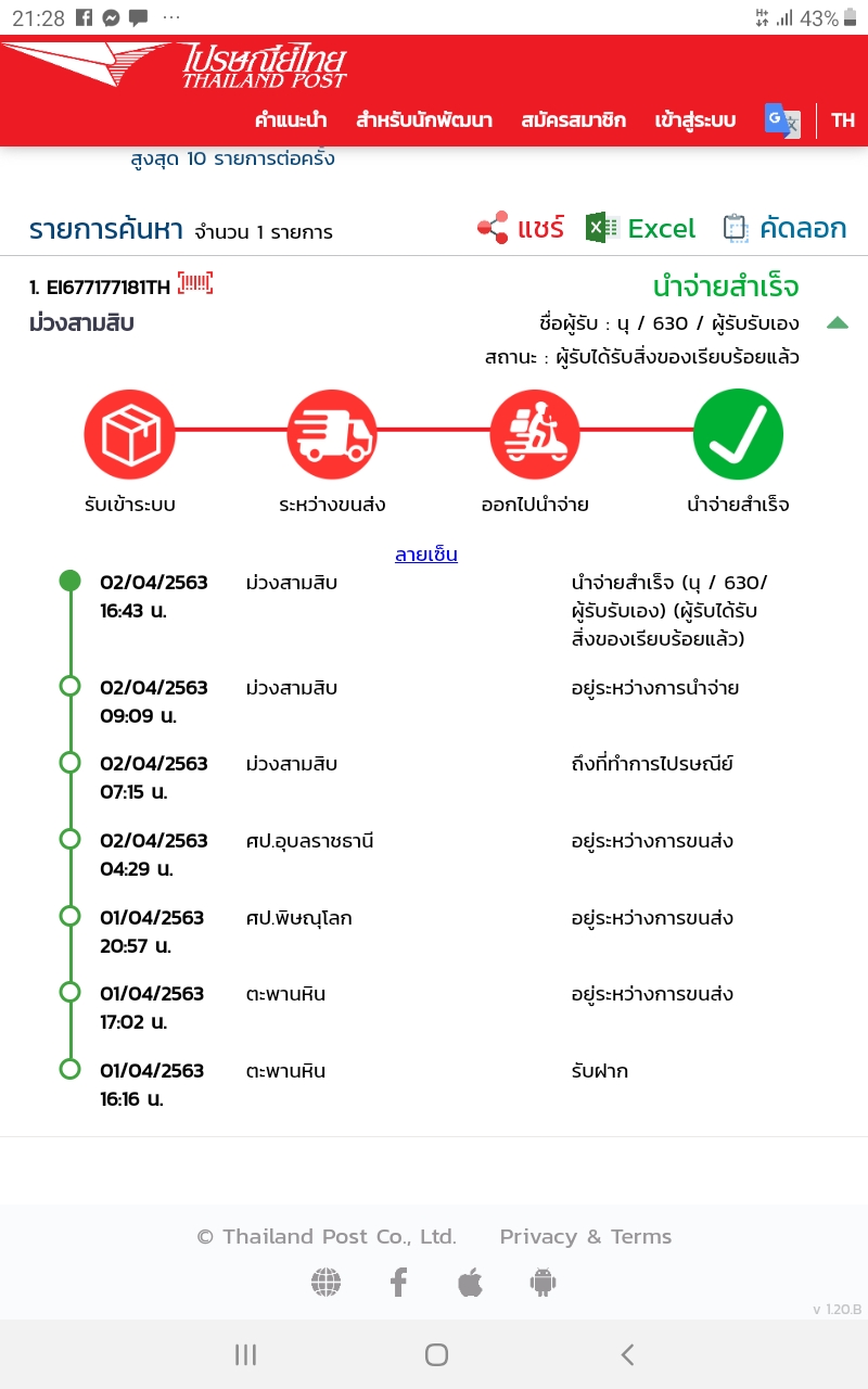 เก็บเงินปลายทาง ไปรษณีย์ไทย ผ่านมา2วัน SMSไม่เข้า